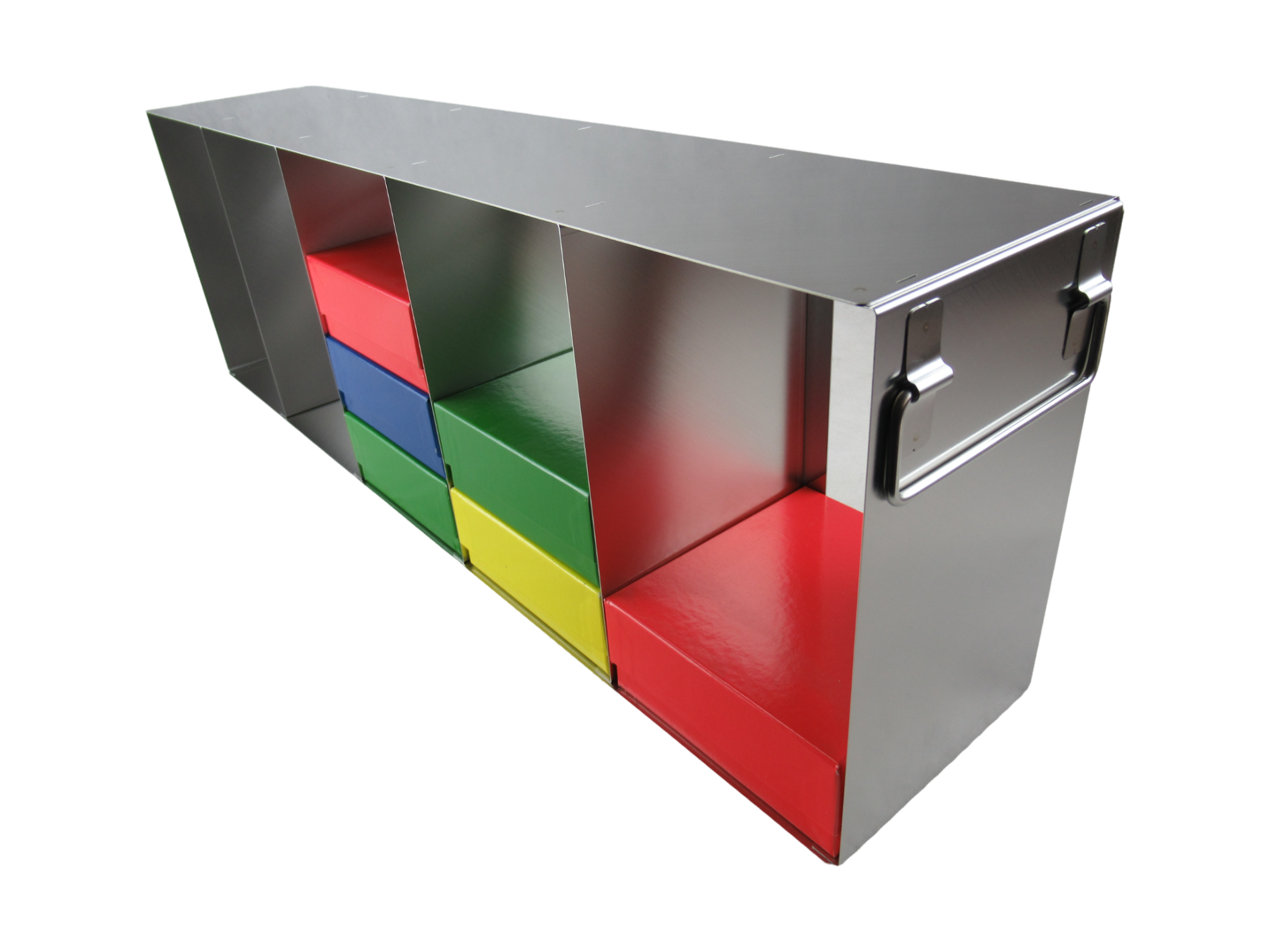 Auf Kundenwunsch können unsere Schrankgestelle auch mit einem vertikalen Klappgriff an der Front ausgestattet werden.