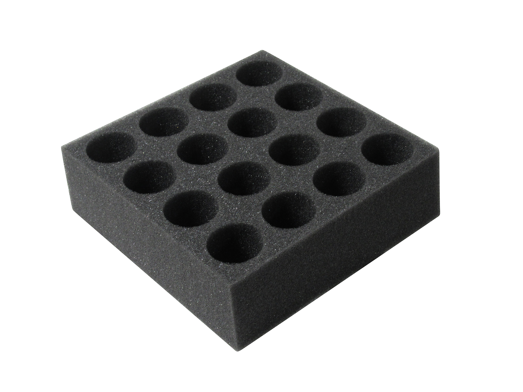 Locheinsätze für Schubladen zur direkten Lagerung von Röhrchen. Die Locheinsätze können außerdem auch entnommen und als Workbench am Arbeitsplatz benutzt werden.