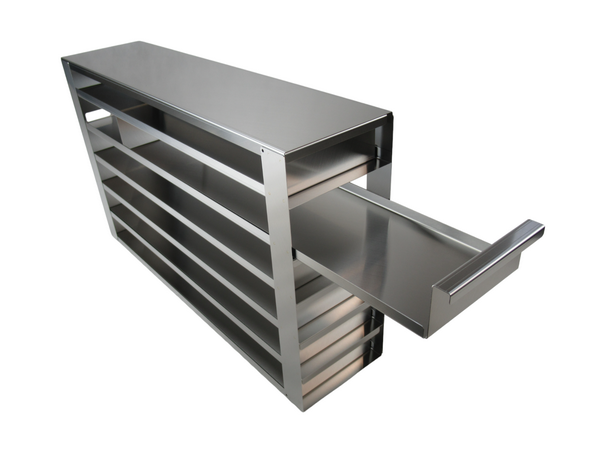 - Einfache Nutzung: Die Schrankeinschübe verfügen über Schubladen die einen einfachen Zugriff auf Ihre Probe ermöglichen. Im Gegensatz zu Schrankgestellen mit seitlicher Bestückung müssen Sie nicht das ganze Rack aus dem Schrank nehmen um an Ihre Proben zu kommen, es reicht eine Schublade. Dadurch wird die Entnahme aus dem (Tief-)Kühlschrank zum Kinderspiel.